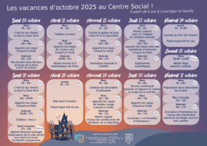 RDV samedi 4 octobre. Centre Social Semur-en-Auxois : atelier de 9h30 / 12h00